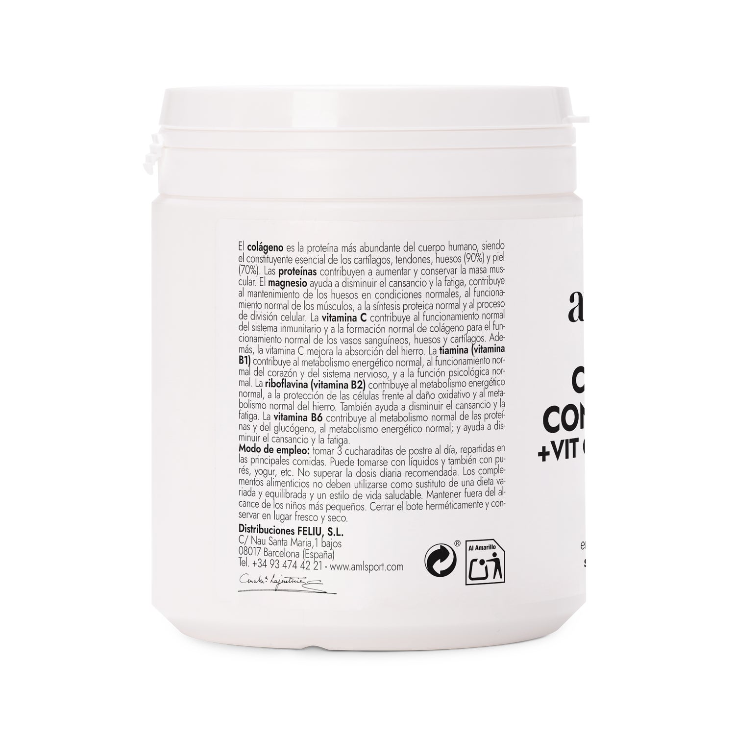 Dietary supplement powder, easily absorbed for the maintenance and care of the body's health. Formulated with collagen, magnesium, vitamin C, B1, B2 and B6. Promotes physical recovery in athletes and helps strengthen muscles, ligaments, joints and bones. It favors the improvement of physical performance and favors the improvement of muscle and skin tone. Vitamin C is involved in the formation of tissues and has a great antioxidant power that promotes cellular health. Indicated for recovery in athletes.
