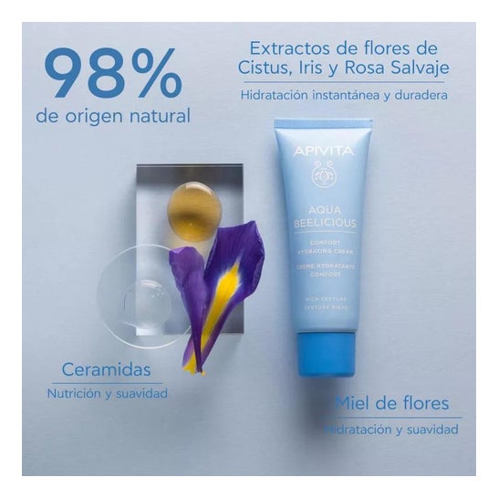 Cream with a fresh effect that helps to improve the hydration of sensitive facial skin. Contributes to increase the smoothness and firmness of the epidermis, while promoting the production of collagen fibers. Formulated with flower extract, honey, wild rose, vitamin E, propolis, Aloe vera, allantoin, hyaluronic acid, natural ceramides, cocoa butter and shea butter. In addition, it facilitates skin preparation for the application of foundation. Suitable for all skin types. Dermatologically tested.