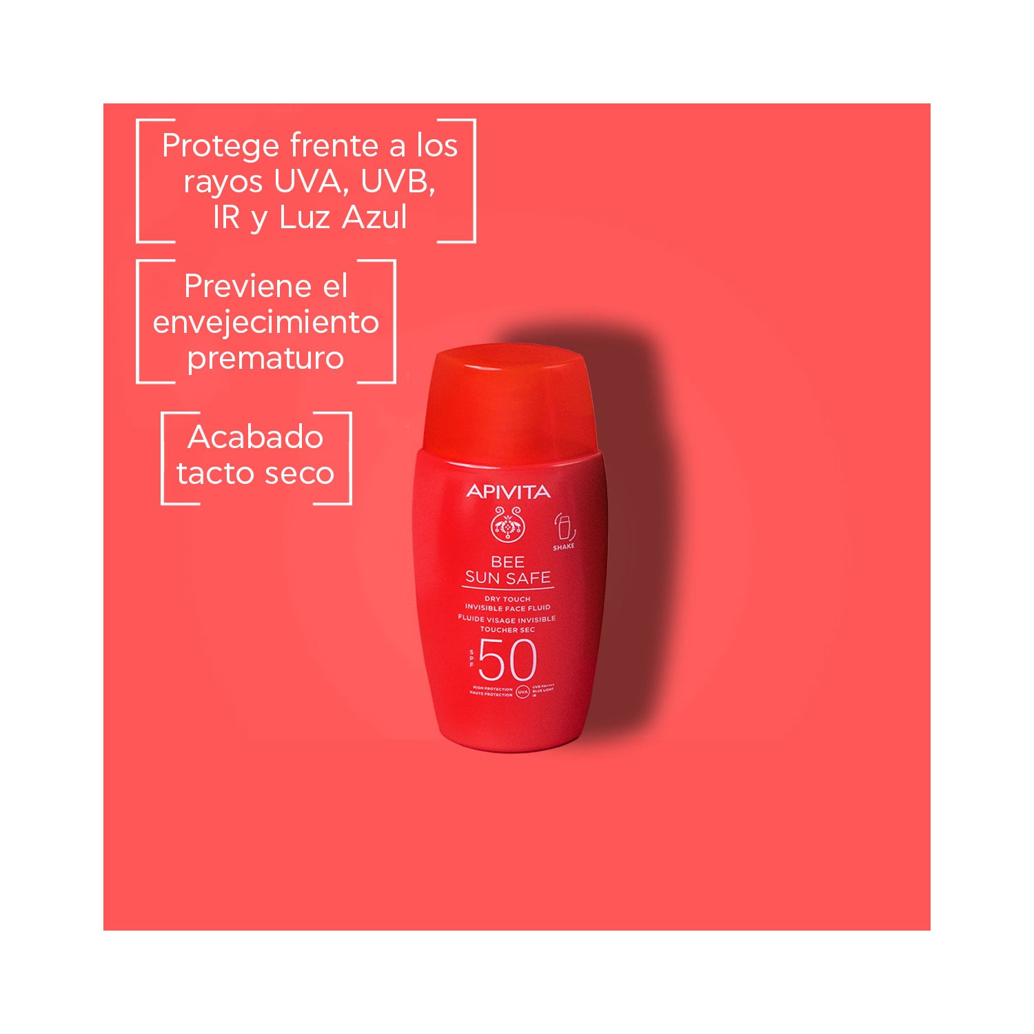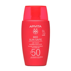 Apivita Bee Sun Safe Invisible Dry Touch Facial Fluid SPF50+ 50ml is a sunscreen that leaves no residue thanks to its lightweight and quick-absorbing texture. It offers broad-spectrum protection against UVA, UVB, IR, and blue light due to its photo-stable combination of sunscreen filters SPF50+.