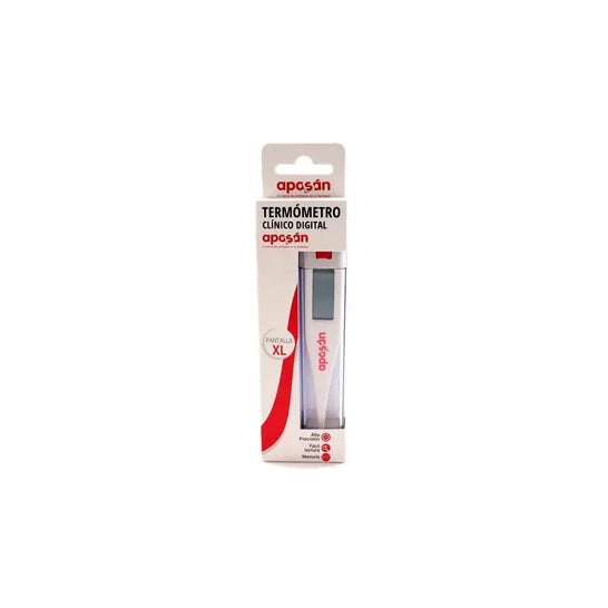 Digital clinical thermometer with large display to measure body temperature accurately. It allows an easy and quick reading of the result. Contains memory of the last value. Its measurement range is from 32 to 44º. With a sound alarm that warns when the temperature measurement is complete.