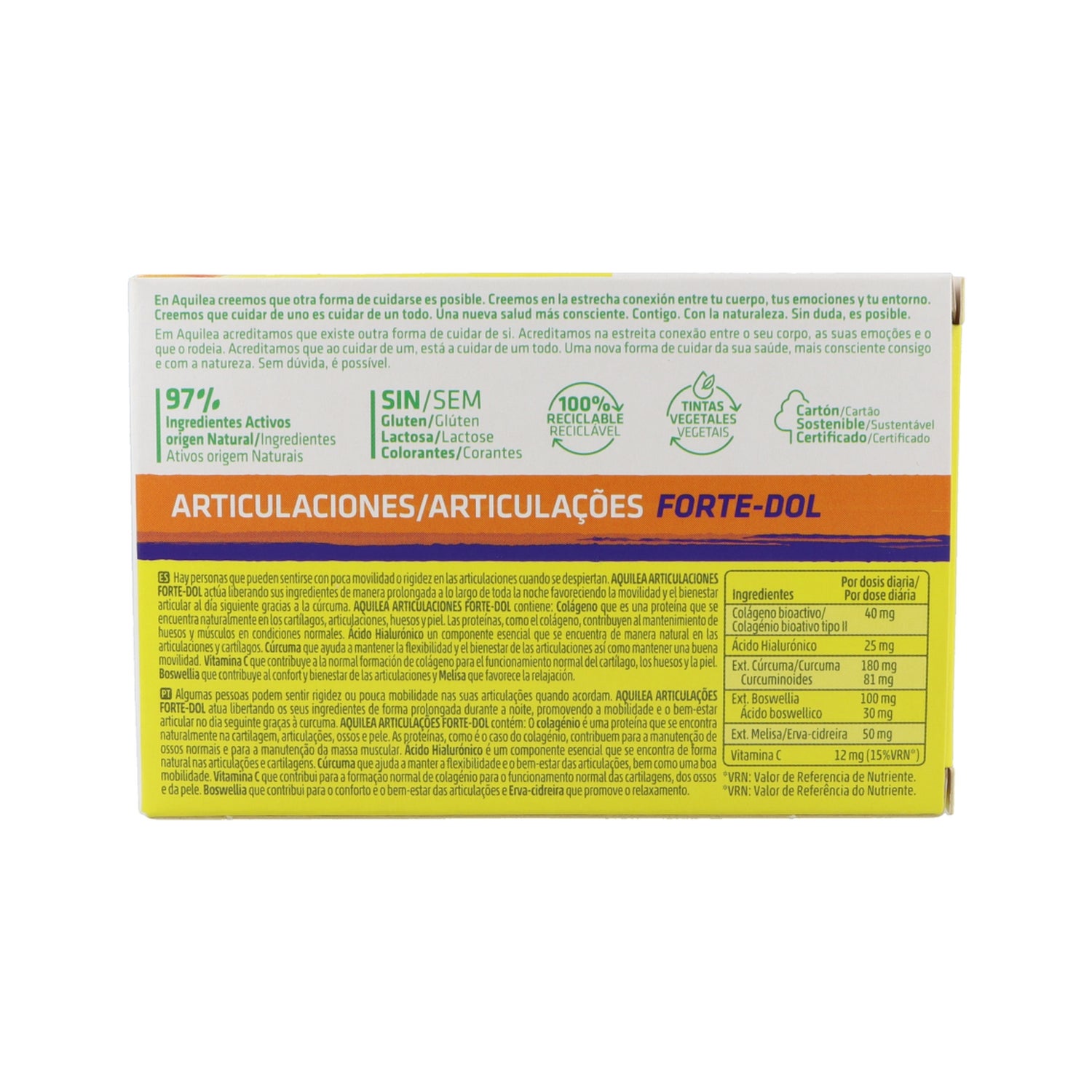 Aquilea Articulaciones Forte-Dol is a food supplement that helps to reduce the discomfort caused by wear and tear of the joints, maintain their flexibility and well-being.