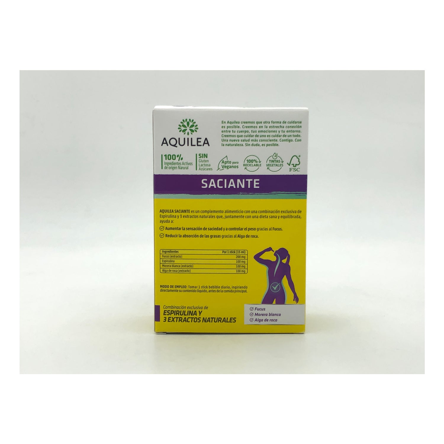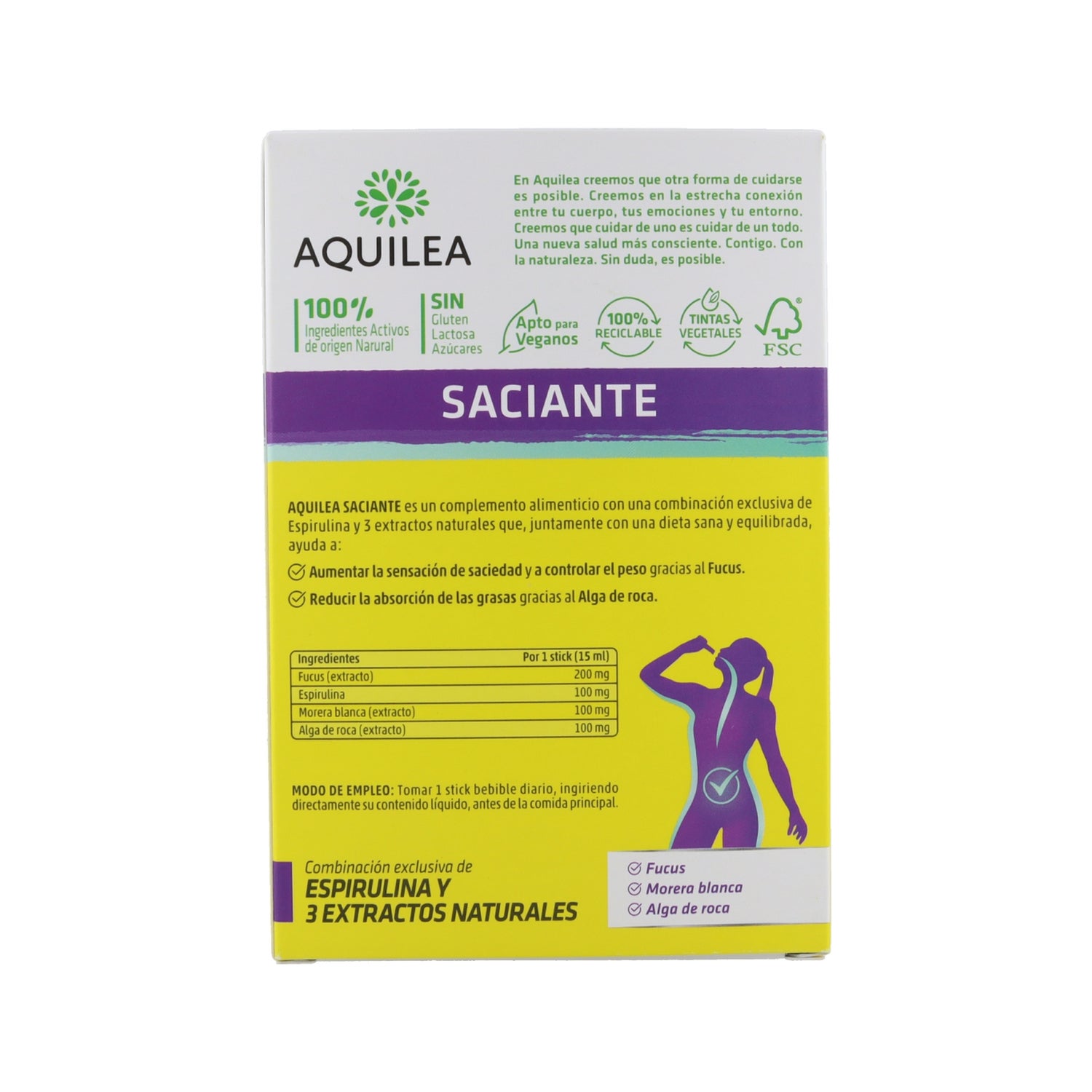 Aquilea Saciante 15sticks is a food supplement that helps to increase the feeling of satiety, while helping to reduce fat absorption.