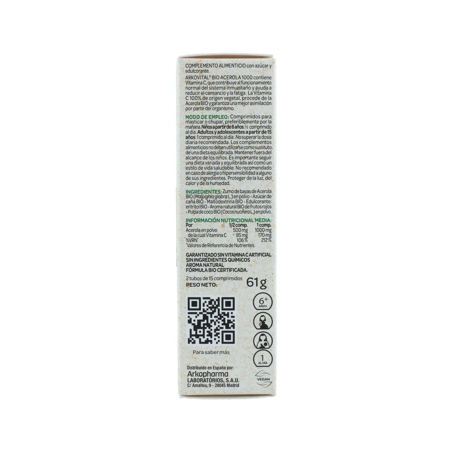 Arkovital® Acerola 30comp is a multivitamin supplement formulated on the basis of a set of vitamins and minerals extracted from fruits and vegetables. These chewable tablets contain vitamin C extracted from acerola, so that the body recognizes and assimilates it more easily. They help maintain the body's vitality, shape and defences. In turn, they help reduce fatigue and promote the proper functioning of the immune system.