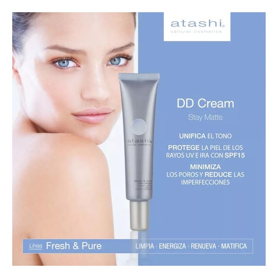 Atashi® fresh&pure DD cream stay matte intense tone 40ml is a matifying cream that unifies skin tone without drying it out. It also protects the skin against UV and IRA rays.
