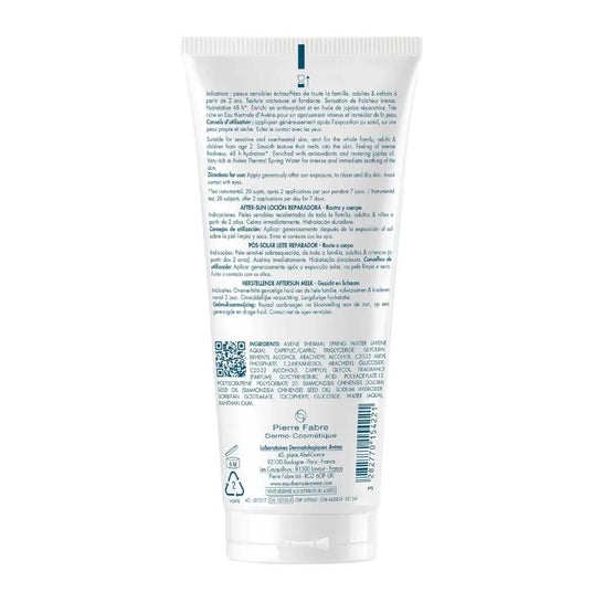Avène Aftersun Repairing Milk 200ml is an aftersun that helps repair the skin after prolonged sun exposure. In addition, its formula with vitamin E and Avène thermal spring water helps soothe and keep the skin moisturized. Its light texture leaves a very pleasant sensation. Suitable for children from 3 years of age and adults.