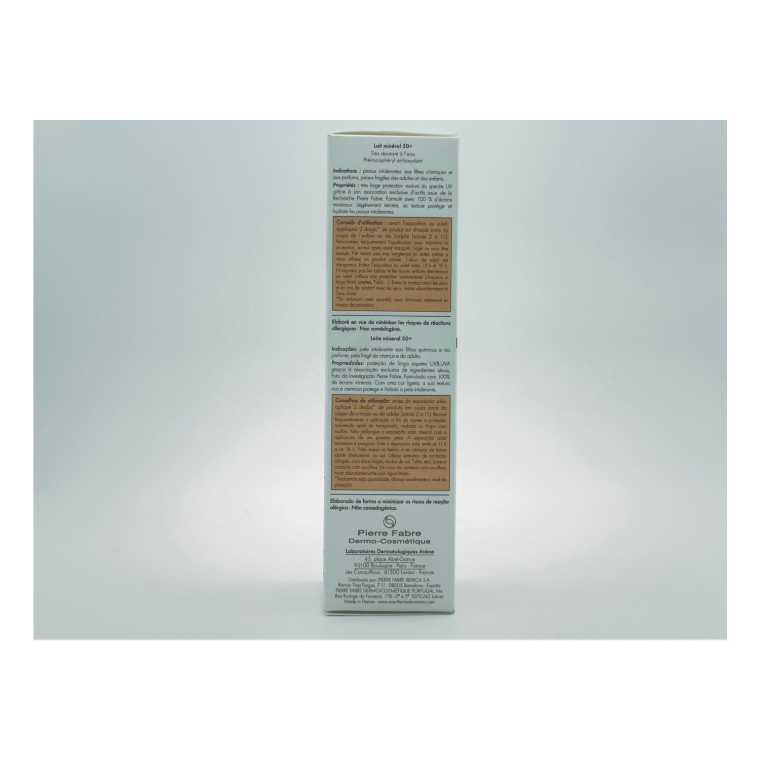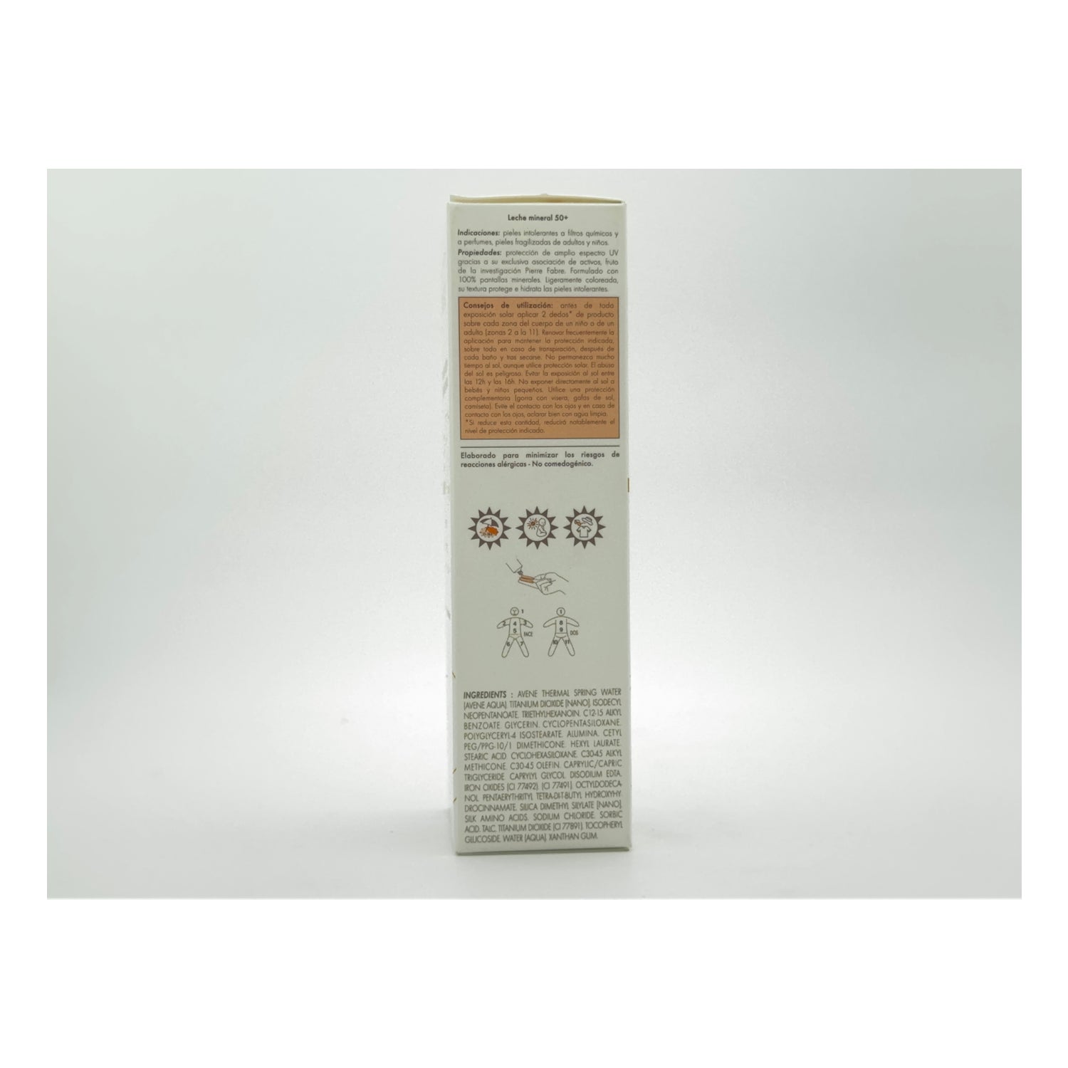 Avène' s 50+ physical screens milk is a great ally for intolerant skins, a cream that has a high degree of effectiveness against the whole of solar radiation (UVB-UVA long and short), with UVA certificate, very water resistant, photostable, without chemical filter, without perfume and without parabens.