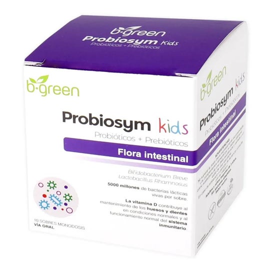 Dietary supplement for children in a soluble powder format, made from probiotics, prebiotics, and vitamin D, which is indicated to help restore intestinal flora.