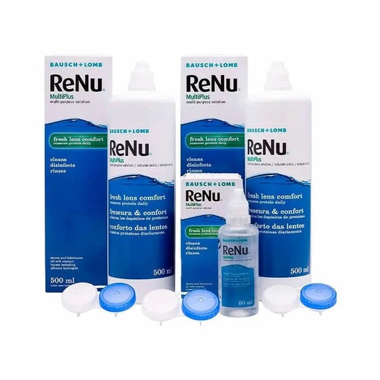 Bausch & Lomb Renu Multiplus 2x500 + 60ml is a cleaning solution for your soft contact lenses that will remove any impurities and proteins that may be on them after daily exposure, extending their lifespan.