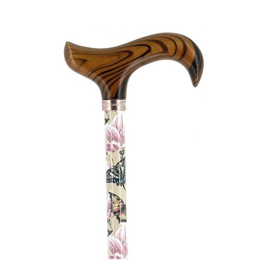 This cane stands out for its elegant finish in beige tones, adorned with floral motifs, combining functionality with a sophisticated style.