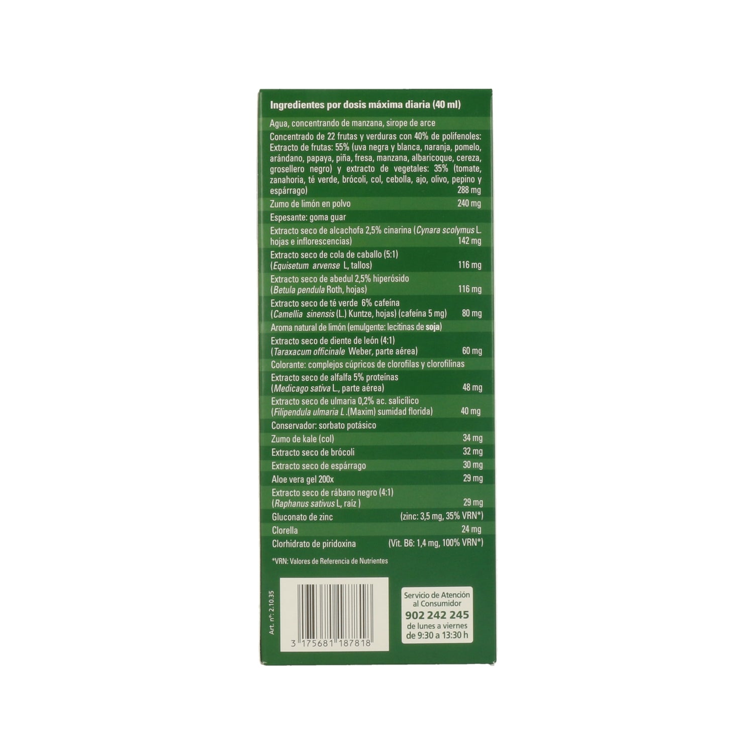 Made with artichoke (star ingredient) and a high concentration of plants, fruits and vegetables from organic agriculture (Birch, Horsetail, Black Radish, Green Tea and Ulmaria).