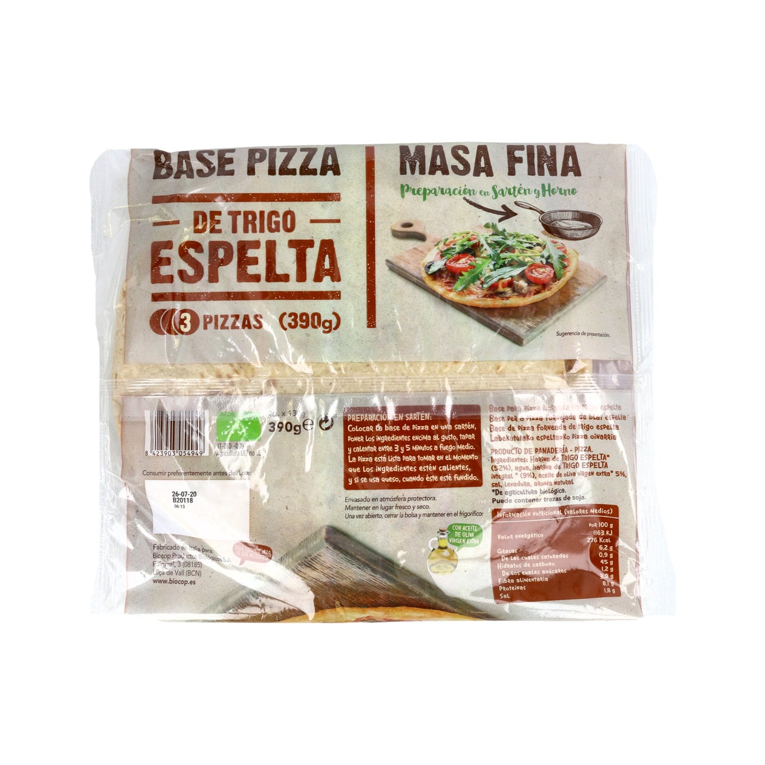 The spelt wheat pizza base thin dough Biocop brand is made with wholemeal flour and white. Suitable for preparing in the oven or pan. The product is suitable for vegans and vegetarians. When all the ingredients are hot, the pizza is ready to eat. Store in a cool, dry place.