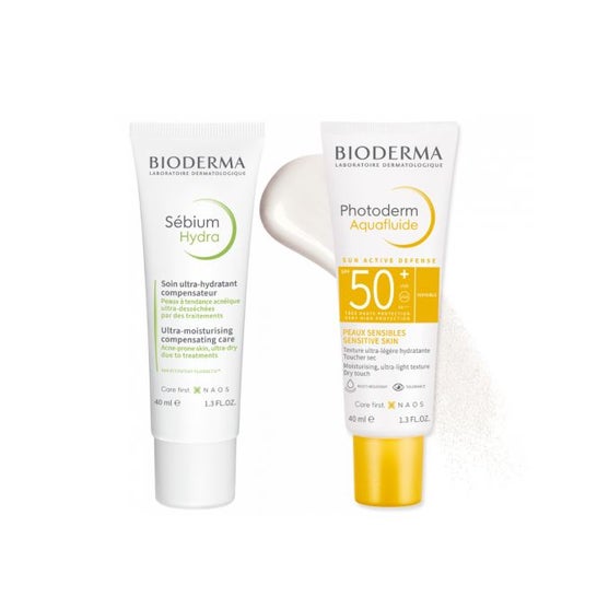 Bioderma Sébium Hydra 40ml + Photoderm Aquafluide Spf50+ 50ml is a promotional pack designed to be used during treatments that can cause dryness in the skin. This set includes two key products that help maintain hydration and sun protection.