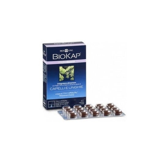 Biokap Mile D Tricofolt60Cps is a supplement designed for the comprehensive care of hair and nails, focused on strengthening and maintaining their health. This product aims to protect and revitalize hair, helping to reduce hair loss and improve both its appearance and resilience, as well as that of the nails.