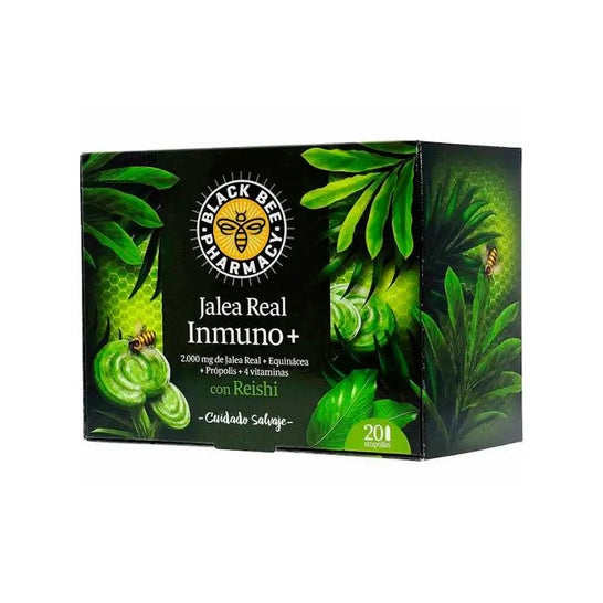 Black Bee Inmuno 2x20vials is a food supplement based on royal jelly, propolis, reishi and vitamins that helps to strengthen the body's defenses. It contains 2 boxes of 20 vials each.