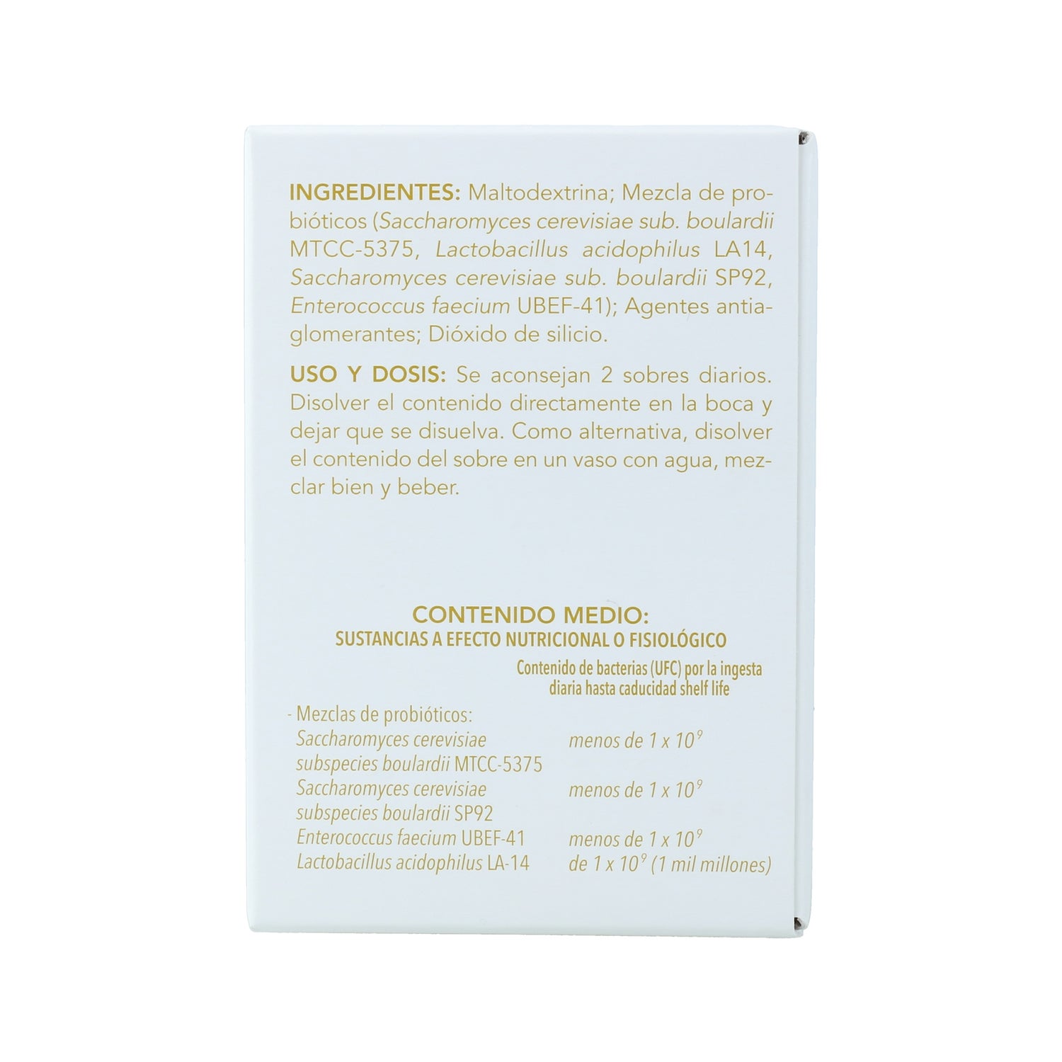 Dietary supplement in capsule format that is specially designed to help restore the balance of the intestinal flora and to promote the assimilation and production of B vitamins, thanks to its compound that is made from lactic ferments from natural active ingredients, so it can be used by people intolerant to lactose and egg.