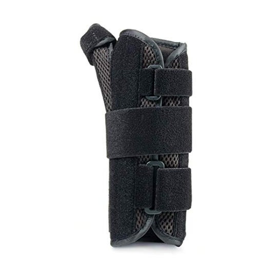 Wrist brace designed to promote post-operative recovery or in case of tendon injuries, sprains, arthritis, osteoarthritis and carpal tunnel syndrome, among others. It has two aluminum stabilizers that are moldable according to the necessary adjustments and Velcro closures to keep the wrist immobile. For right wrist.