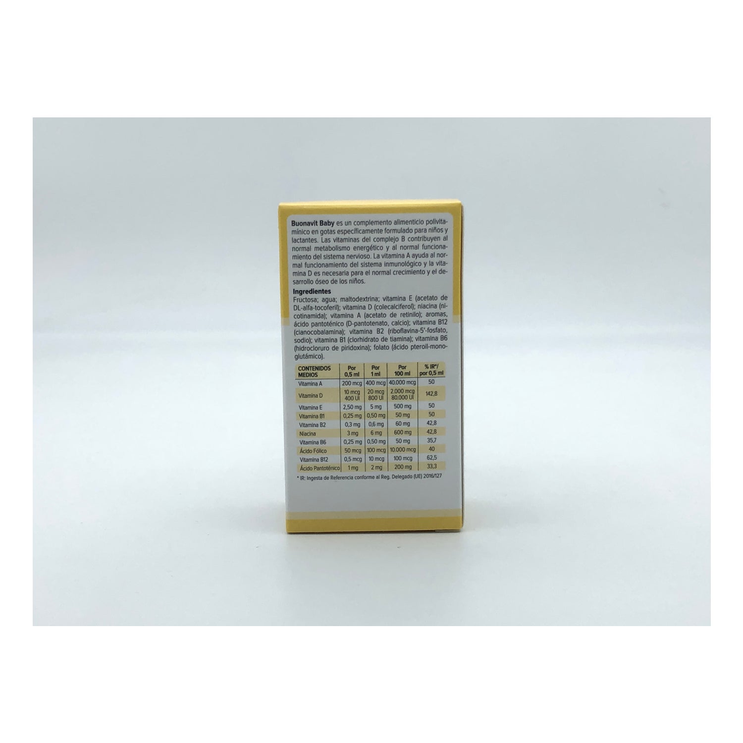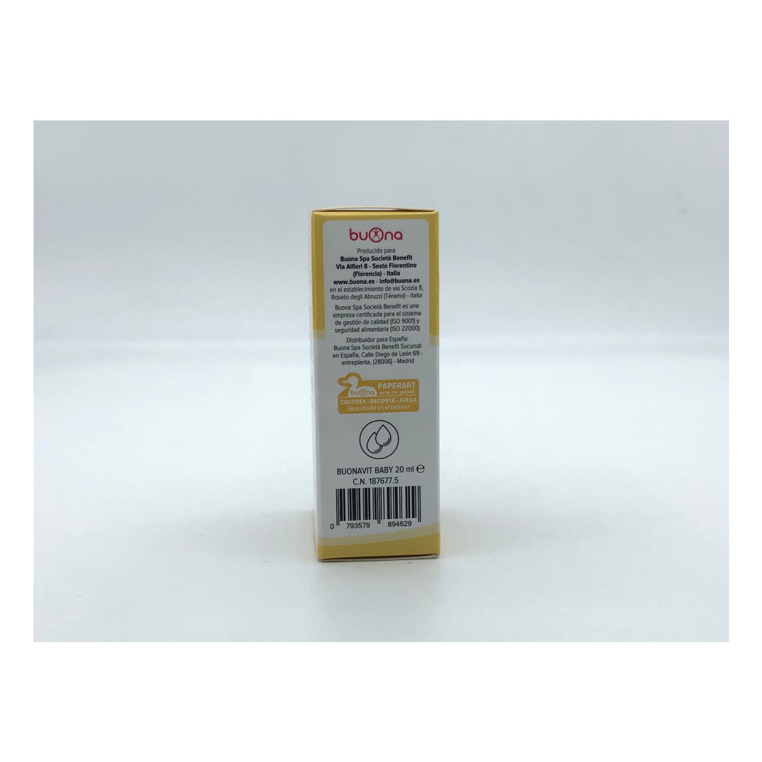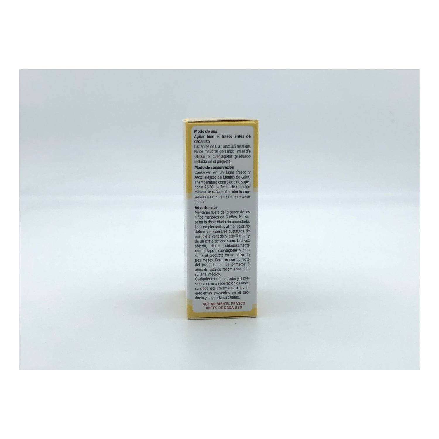 Dietary supplement in liquid format, with an integrated dropper for easy administration, made with a multivitamin complex specially developed to support the healthy growth of babies from birth.