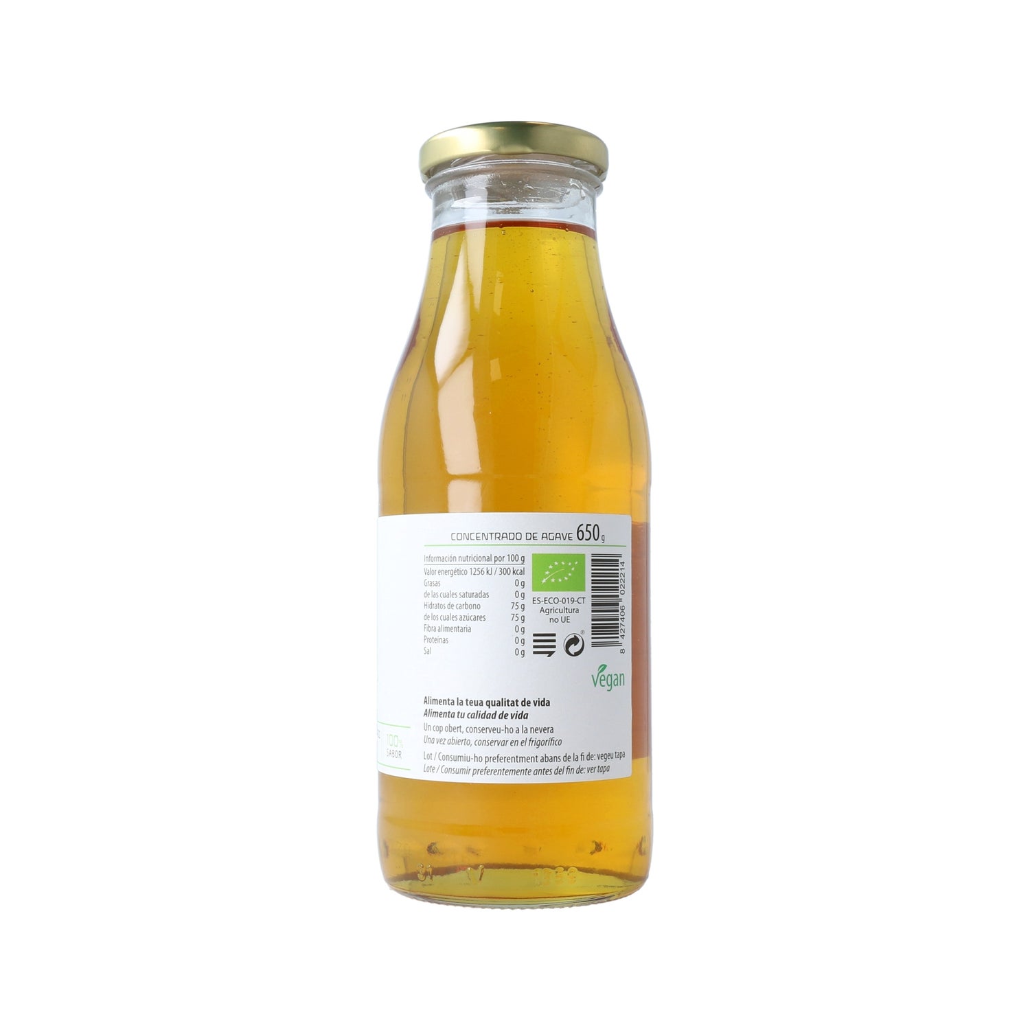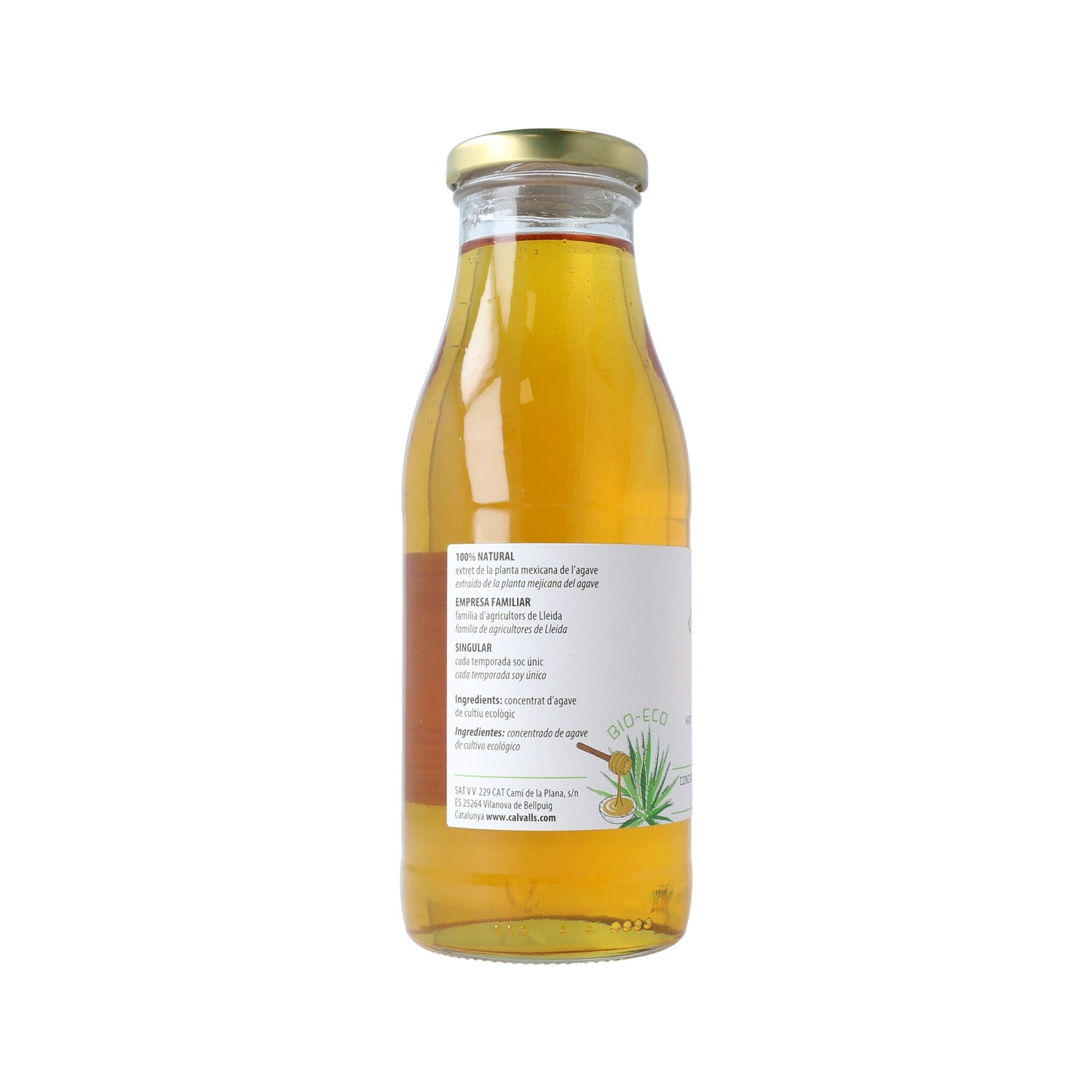 Agave syrup, made from concentrated juice of agave tequilana from organic farming in Mexico. The product is a natural fructose sweetener extracted from the Mexican Agave plant. Traditionally, the Native Americans of Mexico collected the sweet juice "aguamiel" from different varieties of Agave. Aguamiel" is obtained from 7 to 8 year old plants and contains nutrients such as carbohydrates, vitamins and amino acids. Cal Valls is a family business, dedicated since 1978 to the production and elaboration of organic vegetable juices and preserves.