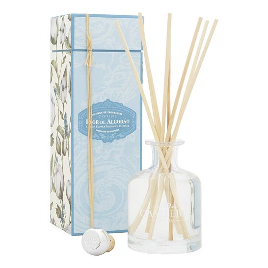 Castelbel Cotton Flower Fragrance Diffuser 250ml is ideal for those who want to scent their home with a cozy and harmonious aroma. Its cotton flower fragrance adds a delicate and pure touch, perfect for living rooms, bedrooms, and any space seeking well-being.