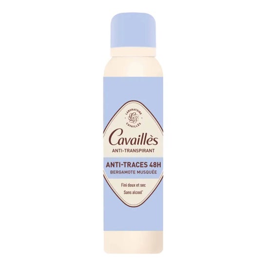 Cavaillès Anti-Perspirant Deodorant Anti-Traces 48h Bergamot Spray 150 ml regulates even the most intense sweating for 48 hours. It provides the softness of a 100% alcohol-free care thanks to its formula enriched with moisturizing and soothing agents.