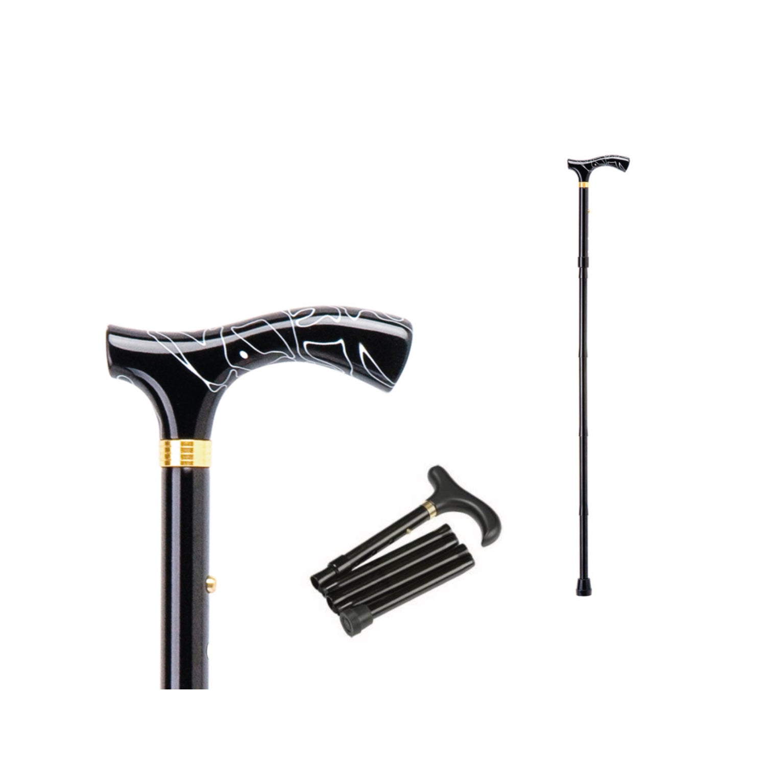 Cane with a foldable aluminum pole that helps people with reduced mobility. Its format is adjustable with a pole that can be regulated to the necessary height (82-90cm).