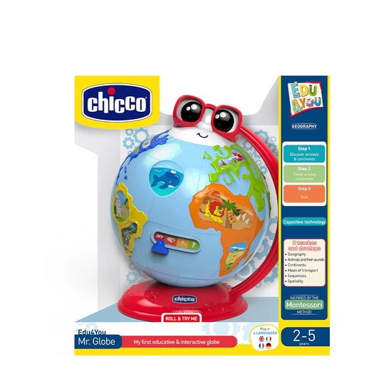 Chicco Edu4you Talking Globe 2-6A is an educational and interactive globe designed to make learning about geography fun. This product allows you to explore: