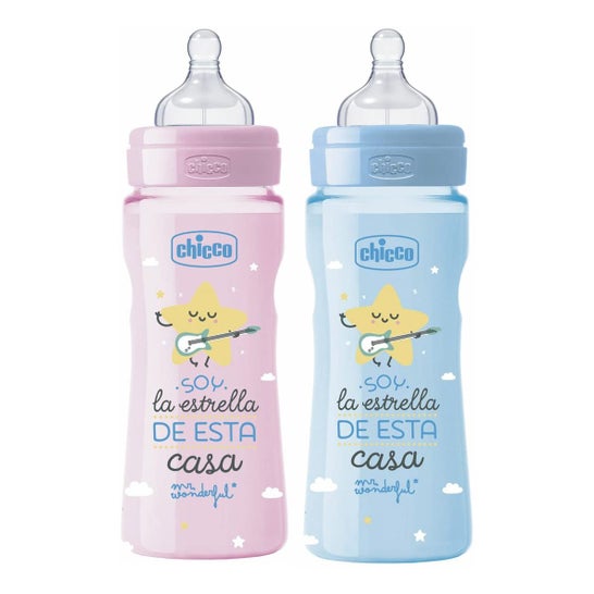 Chicco® Mr Wonderful bottle 330ml 1pc offers the baby the greatest softness, comfort and well-being in each feeding. It has a teat made of silicone that will offer a pleasant sensation throughout the suction.It has a wide mouth for the baby to ingest the food more comfortably, offering a more natural effect thanks to its rings in the reliefs. For the baby to feed comfortably and not feel the change from breast to bottle, it is important to use the products that best suit their needs Chicco® Mr Wonderful bottle is suitable for babies from 4 months of age. *Colour and design may vary depending on availability.