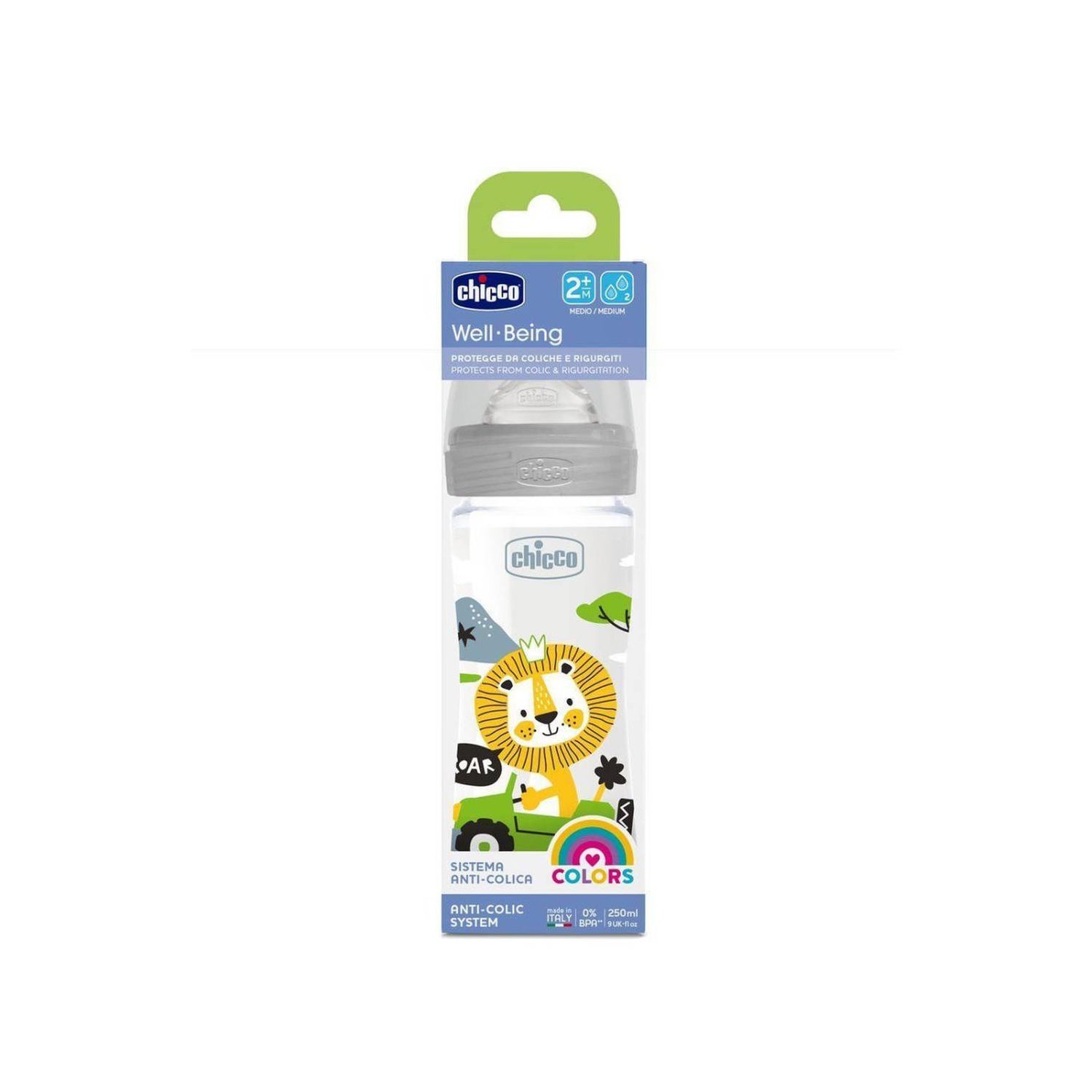 Chicco Well Being Biberão Neutro Silicone Fluxo Médio 2M+ 250ml