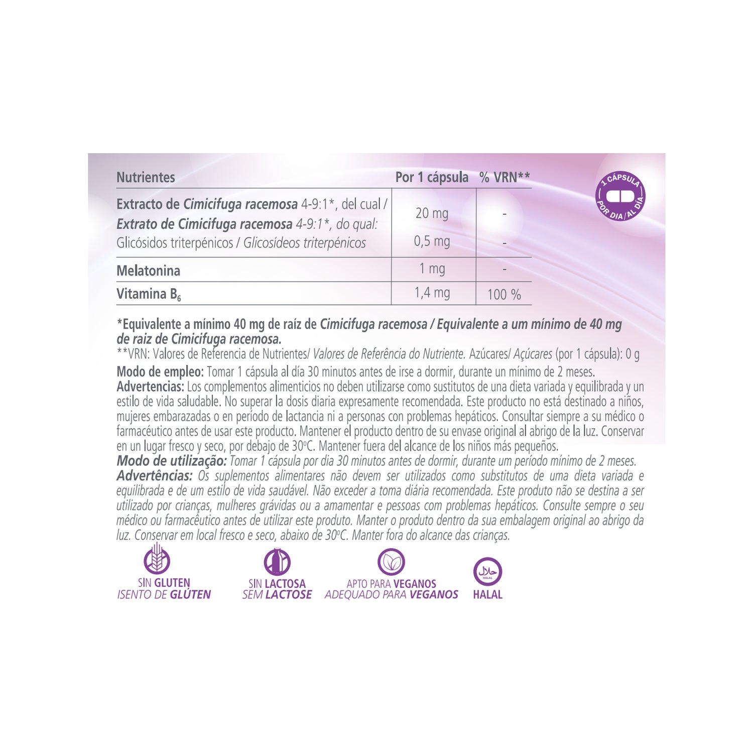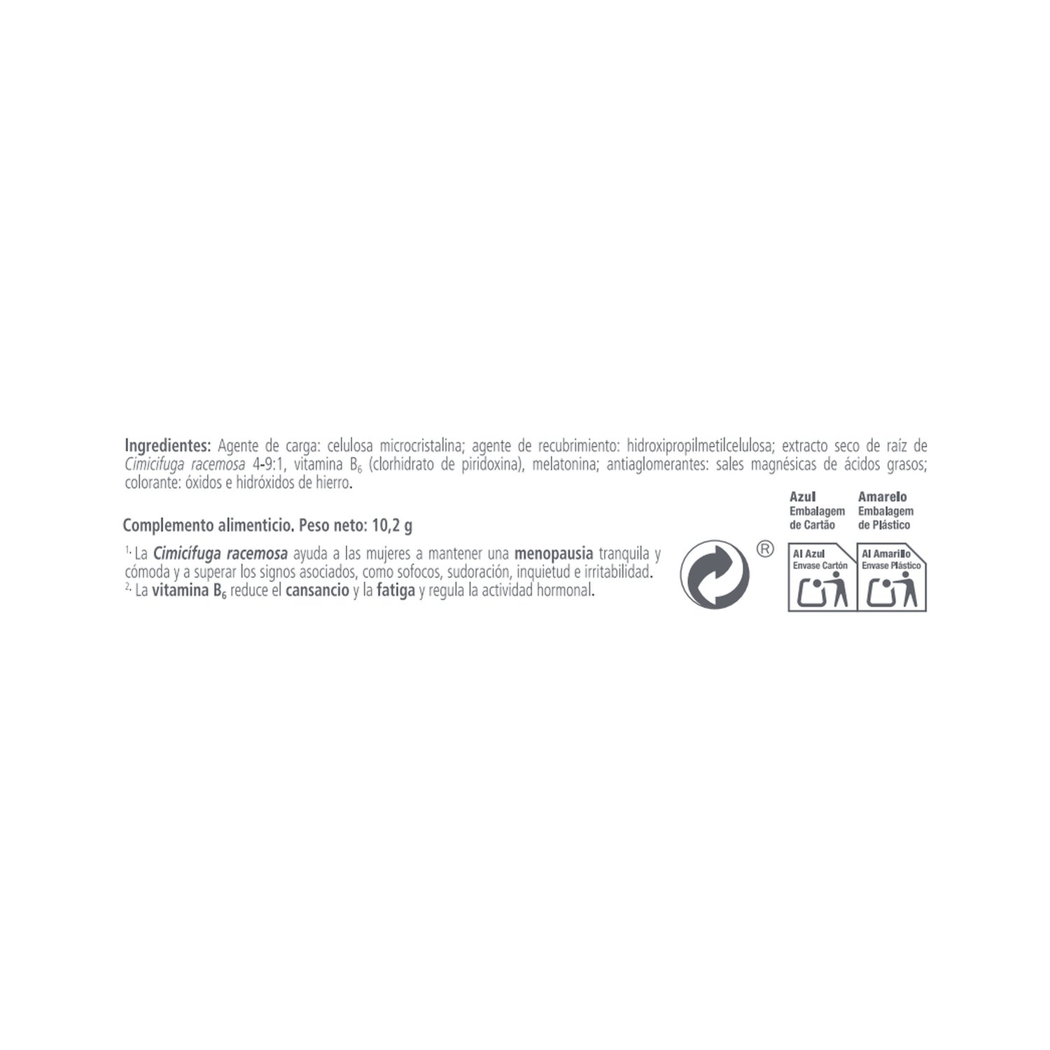 CimiNocta is a supplement that is specially formulated to relieve symptoms caused by menopause or premenopause, such as hot flashes, tiredness, fatigue, difference in hormonal activity or sleep disturbances. This dietary supplement can be consumed by people with celiac disease, egg intolerance, allergic to milk protein or lactose intolerance. Its formulation is based on extract of black cohosh (improves hot flashes, sweating and nervousness), melatonin (helps with insomnia) and vitamin B6 (promotes hormonal balance). This product comes in a box with 30 capsules. It is recommended to take one a day, about 30 minutes before bedtime. It should be noted that this is a dietary supplement that should never replace a balanced daily diet. It should not be administered to children.