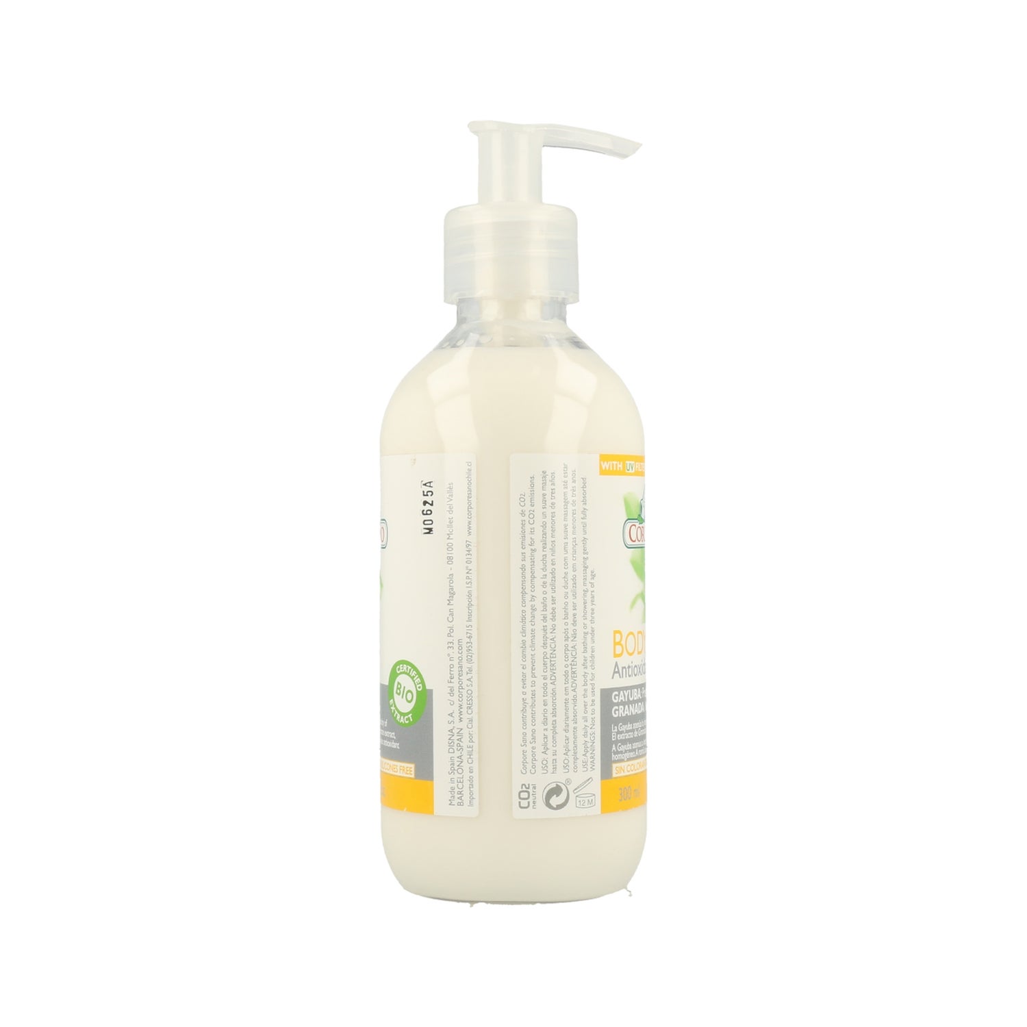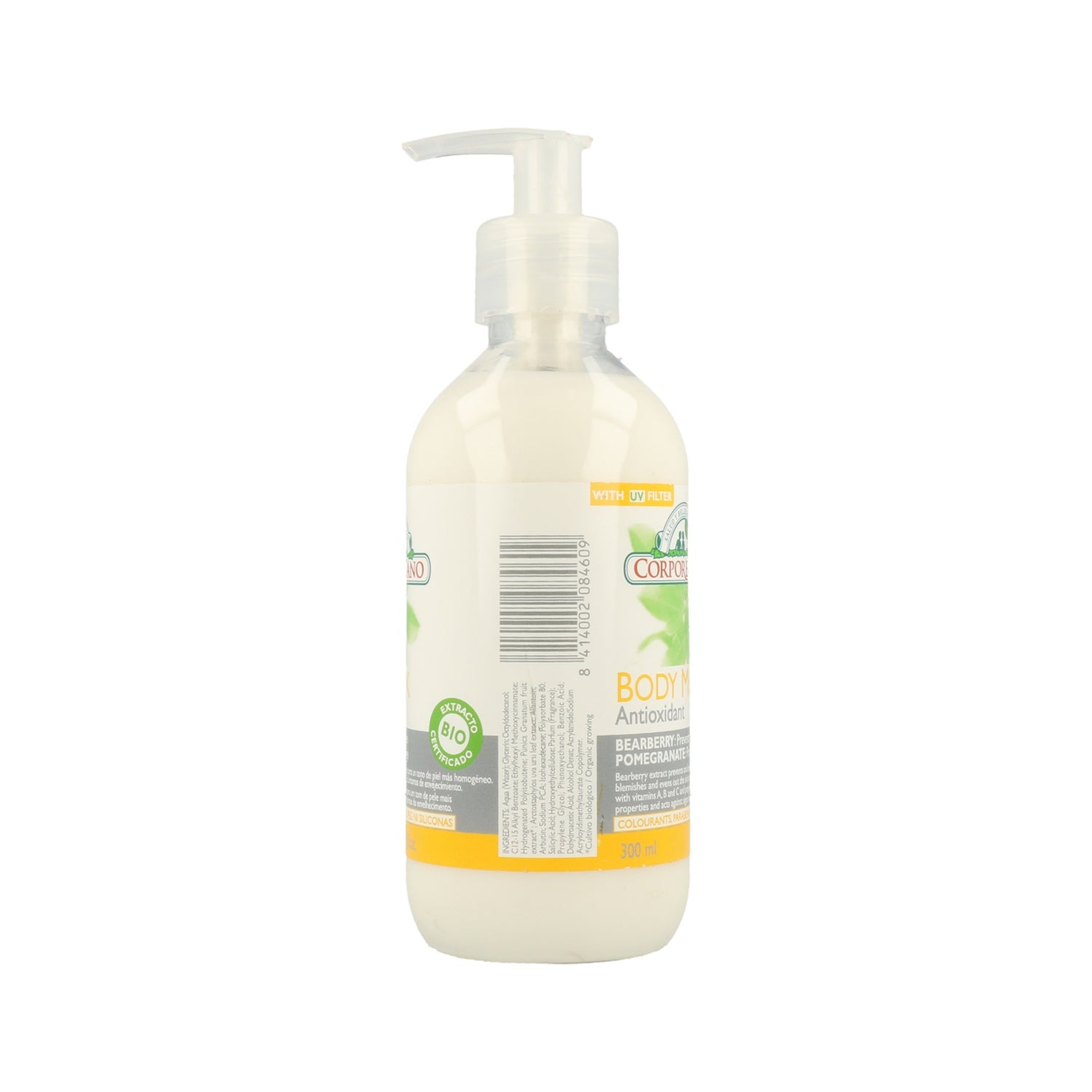 Antioxidant body milk with Bearberry and Pomegranate Corpore Sano Bearberry extract rich in arbutin attenuates the intensity of the spots, fights the symptoms of skin aging. The product contains Pomegranate which gives it a high antioxidant power that fights the symptoms of skin aging. Contains sunscreen filters. Formula without paraben preservatives, colourants, silicones or PEG's.