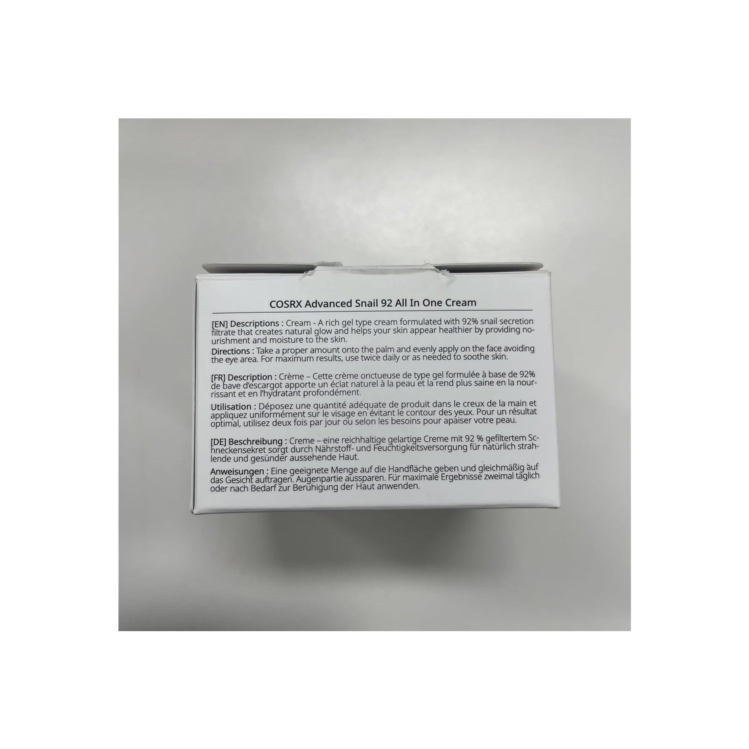 Cream with 92% snail mucin. This all-in-one cream is perfect for daily use on the skin, both during the day and as a night cream.