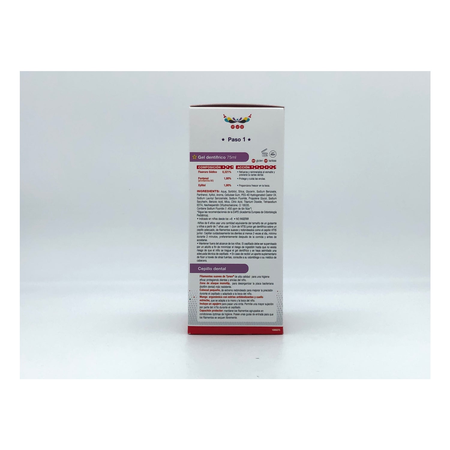 Toothbrush: With small head of high quality soft filaments to provide effective hygiene protecting teeth and gums. Ergonomic handle with non-slip grooves and narrow neck, which adapts to the child's hand and mouth. Includes a hole to pass a ribbon. With protective cap that keeps the filaments grouped in optimal hygienic conditions.