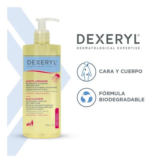 Dexeryl Cleansing Oil 500ml is an oil that helps restore the skin's hydrolipidic barrier and prevents the appearance of redness or itching.