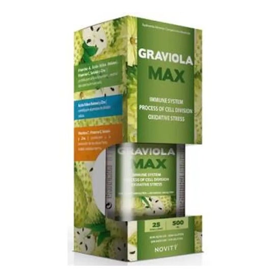 Dietary supplement that helps strengthen the immune system, helps in cases of tiredness and fatigue, contributing to normal energy metabolism. In addition to helping in normal psychological function. Graviola (Annona muricata) also known as Guanábana is a tree whose fruit is similar to the custard apple, its pulp is soft and white, its texture is fleshy and creamy. The graviola is rich in carbohydrates, fiber, potassium, sodium, magnesium, phosphorus, iron and vitamin C. And it provides astringent, depurative and digestive properties. It is made with ingredients based on graviola, aloe vera, turmeric, black currant, papain and bromelain.