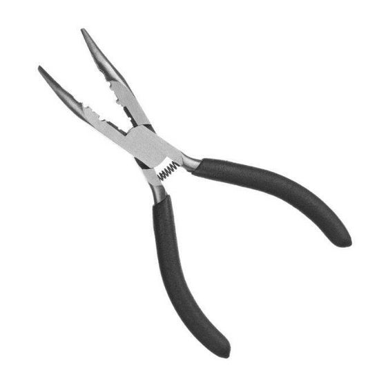 Metallic pliers for treating hair extensions. Designed for the application of hair extensions, stick or to facilitate handling when pressing the rings and staples.