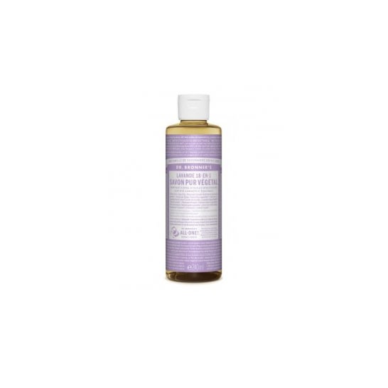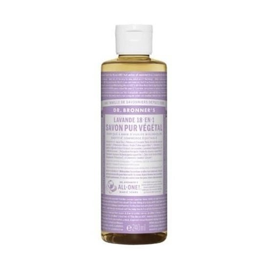 The Dr. Bronner's Lavender Soap and Liquid 240ml is perfect for daily hygiene of hands, face, and body. Its formula, made with certified organic oils, provides a gentle and deep clean.