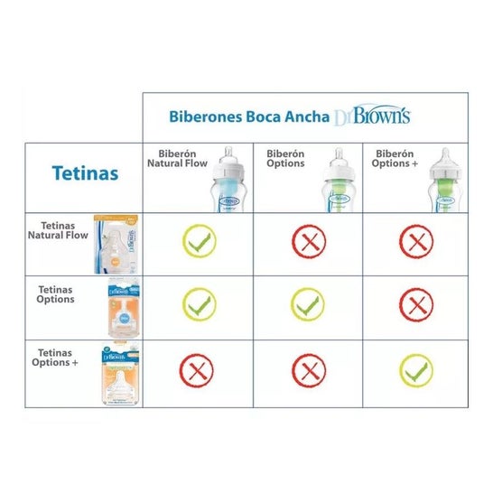 There are several teat flow types: slow flow, suitable for new-born babies; medium flow, from 3-4 months and those with a higher flow, which are recommended to feed cereal and milk porridge. The choice of teat flow will therefore depend on the baby's growth stage. There are also variable flow options, which can be modulated according to how the teat is placed.