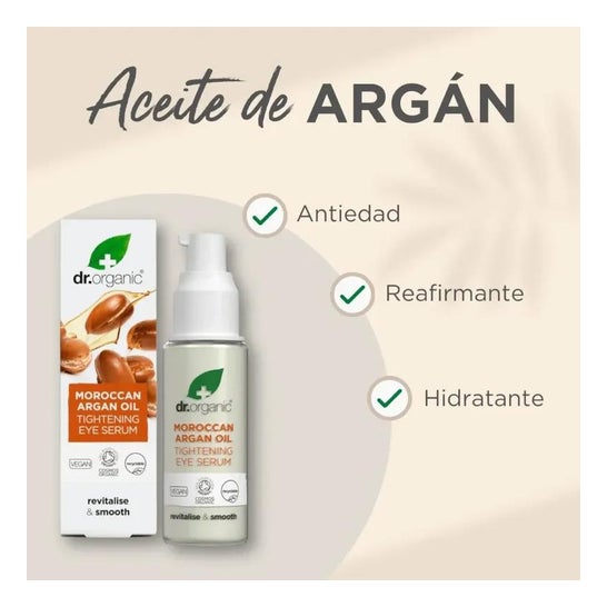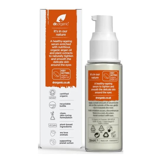 Dr Organic Eye Contour Serum Instant Firming Moroccan Argan Oil 300ml is a rich source of vitamins, antioxidants, sterols, essential fatty acids and vitamin E. Enriched with aloe vera, kigelia, baobab and hibiscus and essential oils, it includes argan fruit proteins, which provide a firming and smoothing action.