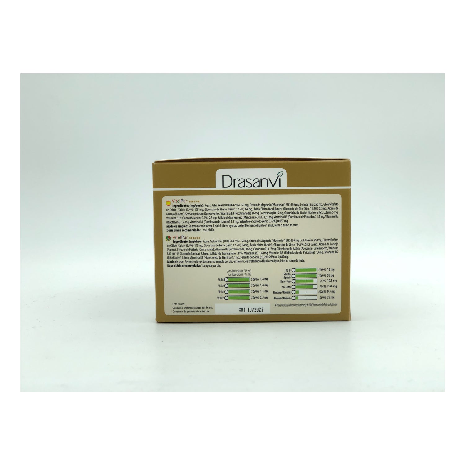 Dietary supplement based on 100% natural royal jelly, helps to overcome stages of fatigue. Especially suitable for people over 50 years, both men and women. Royal jelly helps to protect and stimulate the immune system and strengthen defenses. It brings a lot of energy and vitality. It contributes to improve and protect cognitive functions and physical performance. It promotes good energy metabolism and reduce fatigue. It comes in drinkable ampoules. Recommended for people who want to supplement a balanced diet.