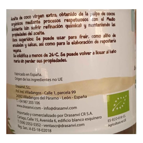 Coconut oil from the first cold extraction of cultivated coconuts in an ecological and certified way. It provides various benefits to the agency. It has a thermogenic effect, which favours the increase in energy metabolism. It also contributes to lipogenesis, decreasing fat accumulation. It helps reduce blood glucose levels and reduce the sensation of appetite. In addition, it is ideal to give the dishes an exotic touch.