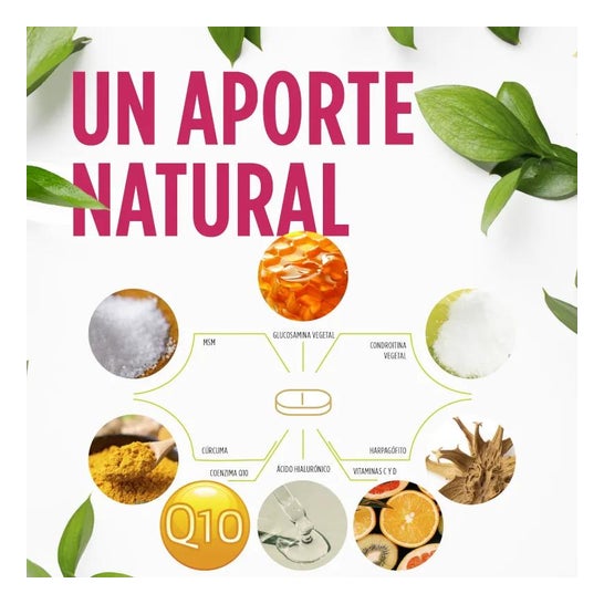 Food supplement formulated with vegetable glucosamine, turmeric, devil's claw and vegetable chondroitin. Contributes to the care and relief of joints while promoting the regeneration of connective tissue. Its ingredients have anti-inflammatory and antioxidant properties. Suitable for vegans. Suitable for adults.