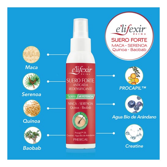 Includes a 35 ml anti-fall fortifying serum that stimulates hair follicle metabolism. Contains maca extract, quinoa, baobab, procapil™ 3%, creatine and blueberry water.