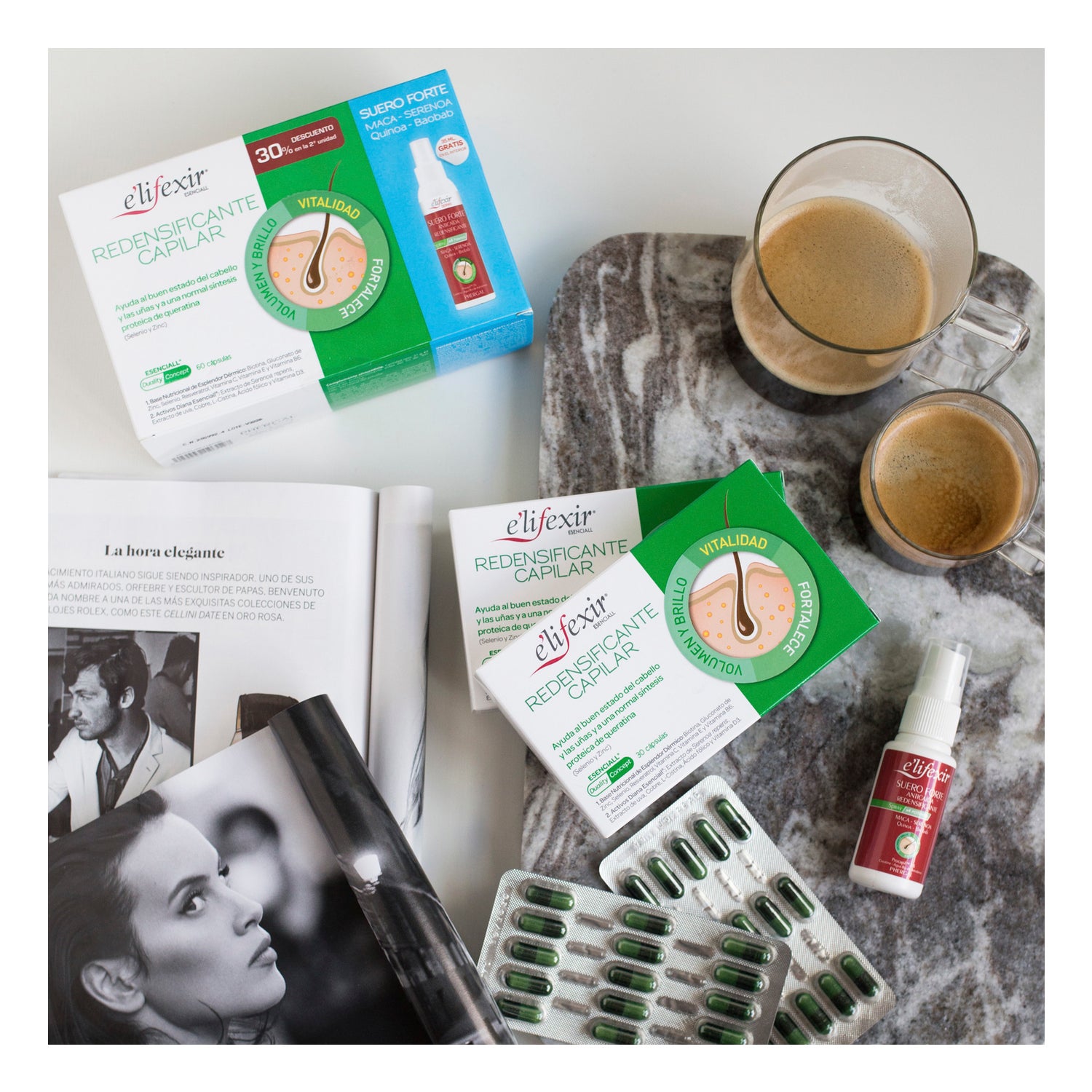 Set designed to help strengthen the hair bulb and improve hair structure. Contains a nutritional supplement in 60 capsule format, composed of a base of biotin, zinc gluconate, selenium, resveratrol, vitamin C, vitamin E and vitamin B6. Enriched with grape extract, folic acid and vitamin D3. Provides vitality, volume, shine, and strength, helping proper keratin protein synthesis.
