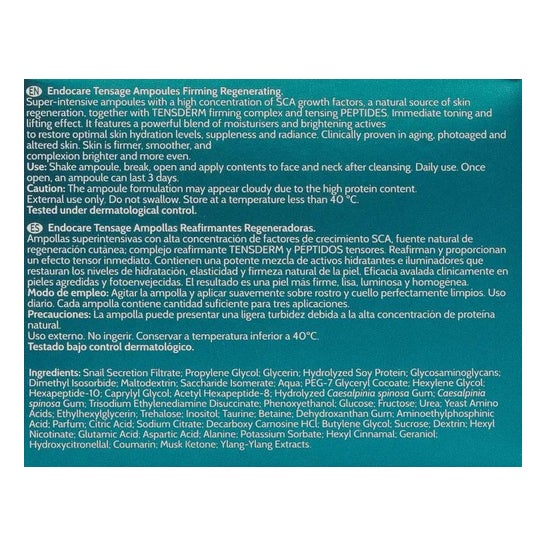 Endocare Tensage 10amp are ampoules that can be used as a flash treatment for specific moments when we want to achieve an immediate effect or that can be added to daily creams to boost them.