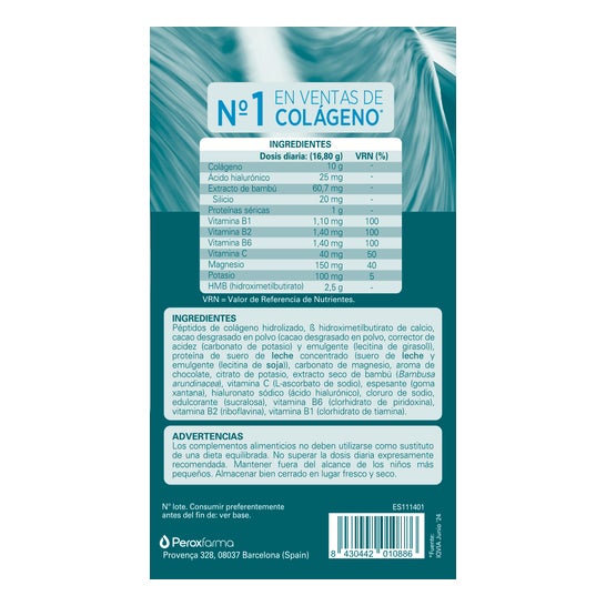 Dietary supplement that helps with joint flexibility and mobility thanks to its content of hydrolyzed collagen, silicon (from bamboo extract), hyaluronic acid, magnesium, vitamin C, vitamin E, and vitamins B1, B2, and B6. We enhance its formula with serum proteins, HMB (beta-hydroxy beta-methylbutyrate), and potassium.