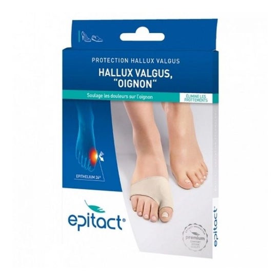 Epitact Bdag Hallux Valgus Protection Size M 1ud is a medical device created to protect and relieve pain from hallux valgus, known as a "bunion." This size M protection offers an effective solution by reducing friction and rubbing on the bony protrusion, facilitating greater comfort while walking.