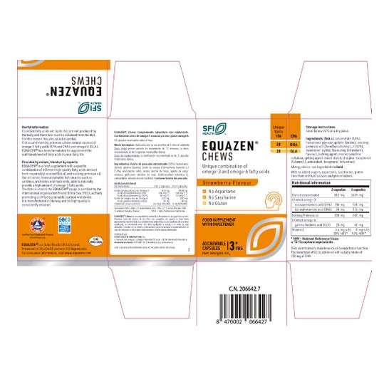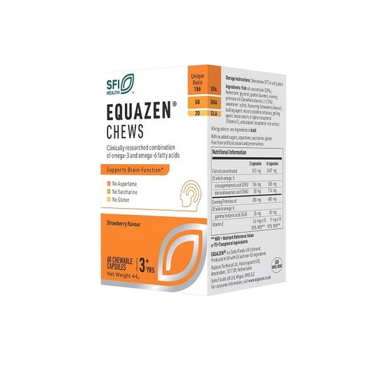 Strawberry flavoured chewable capsules containing omega 3 and 6 fatty acids that help intellectual development and neuronal connection. Its components benefit concentration and memory, which contribute to proper cognitive performance.