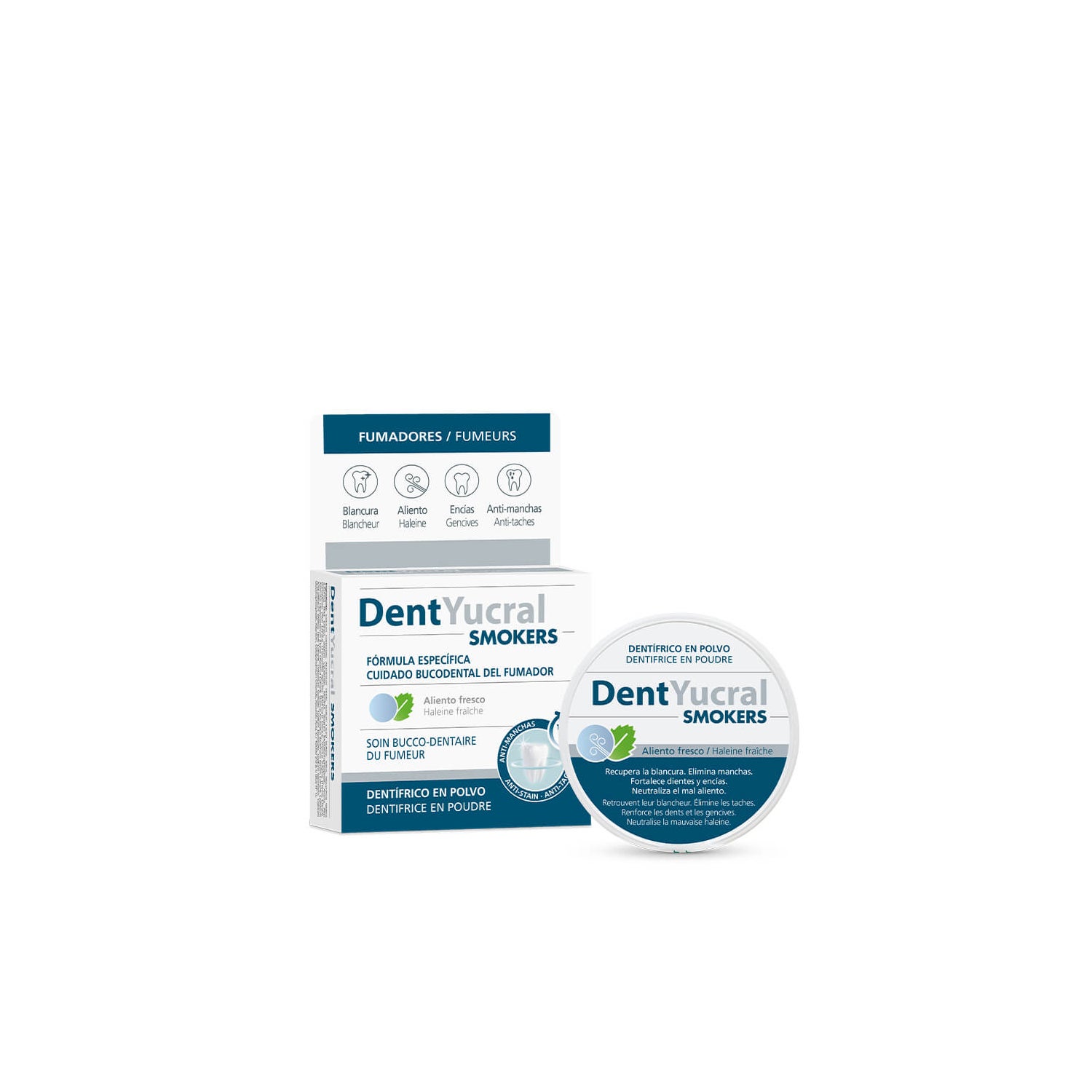 Eucryl Smokers Dental Powder 50g is a dental powder ideal for smokers. Its continued use prevents the appearance of stains on the teeth and prevents it from acquiring a yellowish colour, as well as eliminating dental plaque.