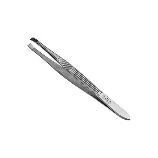 Tweezers for eyebrow plucking, for personal use and for professional quality. Made of high-quality stainless steel in black colour, with an anti-corrosion guarantee. Its wide and straight tip allows a good grip on the hair. Ideal for plucking the shortest and ingrown hairs due to the firm grip they offer.