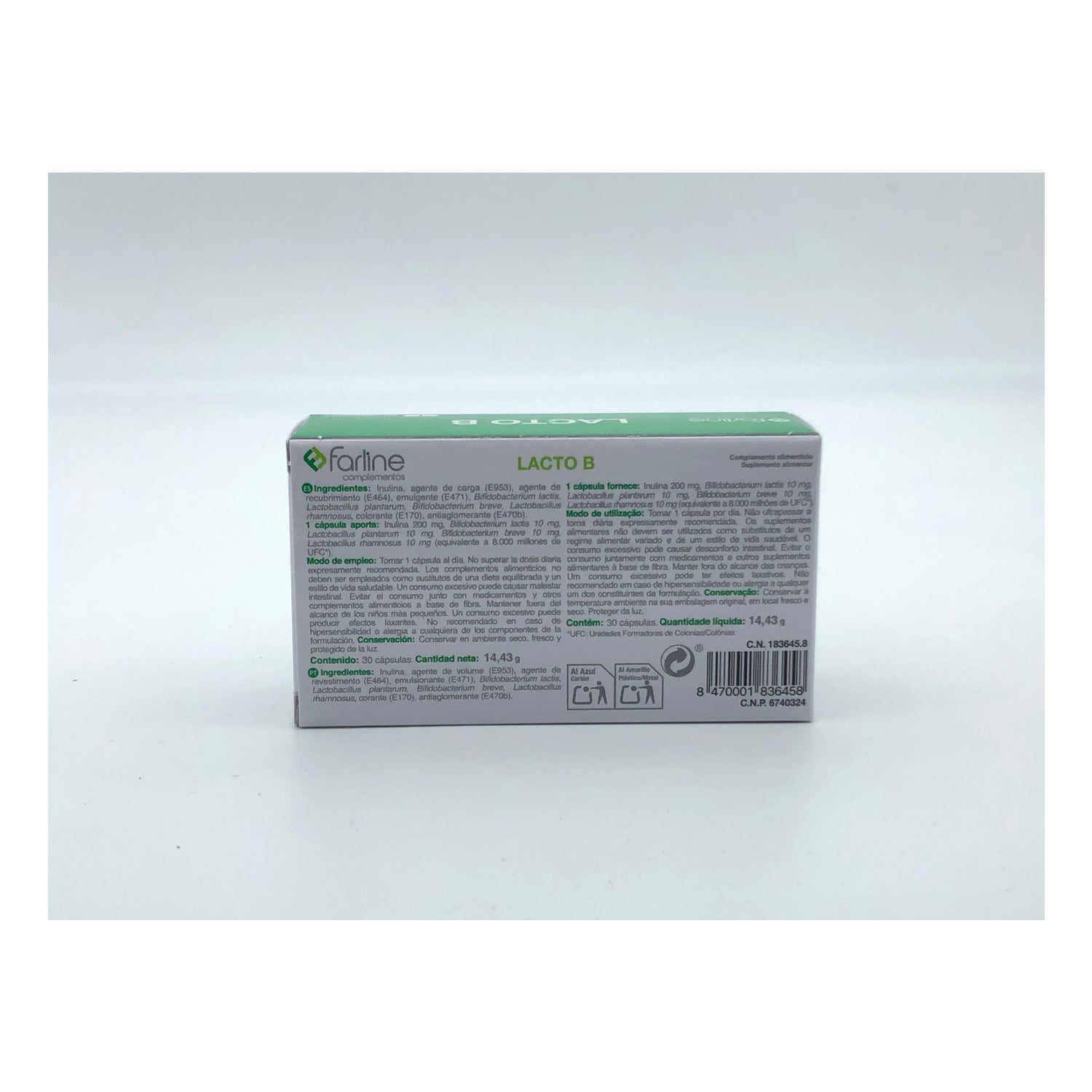 Farline Lacto B 30caps is a probiotic dietary supplement made from inulin, Bifidobacterium Lactis, Lactobacillus plantarum, Bifidobacterium breve, and Lactobacillus Rhamnosus.